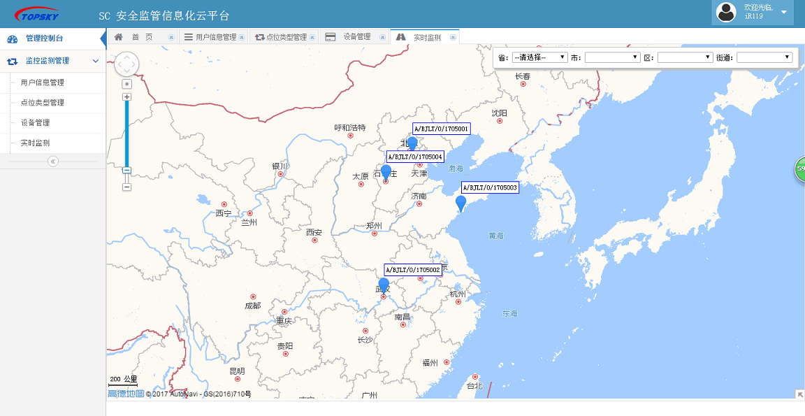 重大危險(xiǎn)源在線監(jiān)控及事故預(yù)警系統(tǒng) PC端(市級(jí)) |