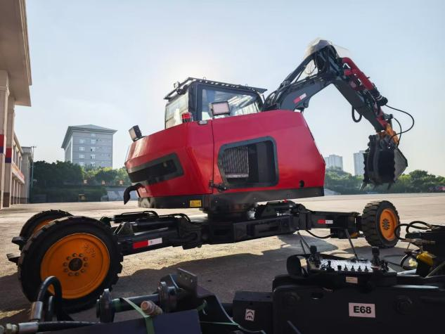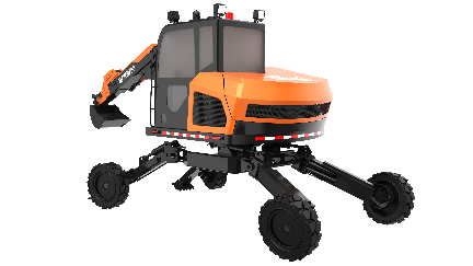 針對山地、高原等復雜地形場景,研制了輪腿爪高機動底盤,可實現復雜地形危險環境下的有人/無人行駛,實現裝備快速機動、高位越障、陡坡爬越、斜坡作業等功能。