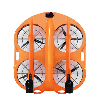 ??救?艇是?款結合了??機特點和?上救援機器?優勢的新?代救援裝備。??救?艇具備4旋翼槳葉,可快速???落??員,節約寶貴時間。待落??員抓住??救?圈,可依靠??救?艇的強勁動?在??上將?員拖拽?安全地帶。