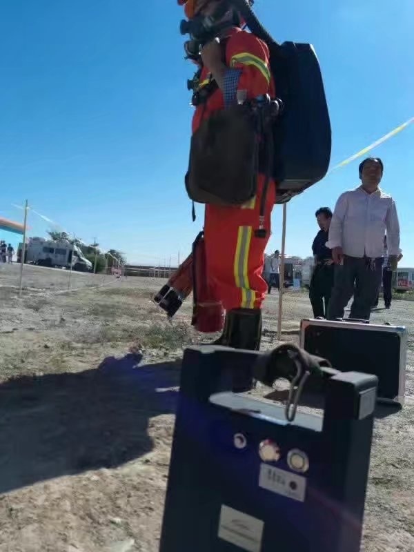 該裝置采用無(wú)線連接方式的信號(hào)中繼與傳輸,應(yīng)急通信網(wǎng)絡(luò)的通信距離可達(dá)20公里。無(wú)線通信網(wǎng)絡(luò)采用自組織、自愈合方式快速形成多跳鏈狀或網(wǎng)狀網(wǎng)拓?fù)浣Y(jié)構(gòu),無(wú)線通信距離不小于2000米,具有快速部署、高帶寬、低時(shí)延、可靠性強(qiáng)等特點(diǎn)。井下救援人員或工作人員,通過佩戴礦用本安型平板計(jì)算機(jī)、配套的低照度攝像頭自帶語(yǔ)音通話、無(wú)線中繼器、多參數(shù)測(cè)定儀等裝備,將現(xiàn)場(chǎng)的實(shí)時(shí)圖像、語(yǔ)音、環(huán)境參數(shù)等信息實(shí)時(shí)回傳到指揮平臺(tái),調(diào)度指揮人員可以實(shí)時(shí)了解現(xiàn)場(chǎng)情況,并對(duì)現(xiàn)場(chǎng)人員進(jìn)行調(diào)度指揮。