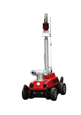 RXR-MC80BD防爆消防滅火偵察機器人采用耐高溫履帶避震式底盤設計,能夠適應救援環境中各種復雜地面。裝配環境檢測裝置,在滅火的同時對現場環境數據進行偵測。機器人由機器人主體,消防炮,環境檢測裝置,遙控箱四部分組成。主要作用是代替消防隊員進入易燃易爆、有毒、缺氧、濃煙等危險災害事故現場實施有效的滅火救援、化學檢測和火場偵察。