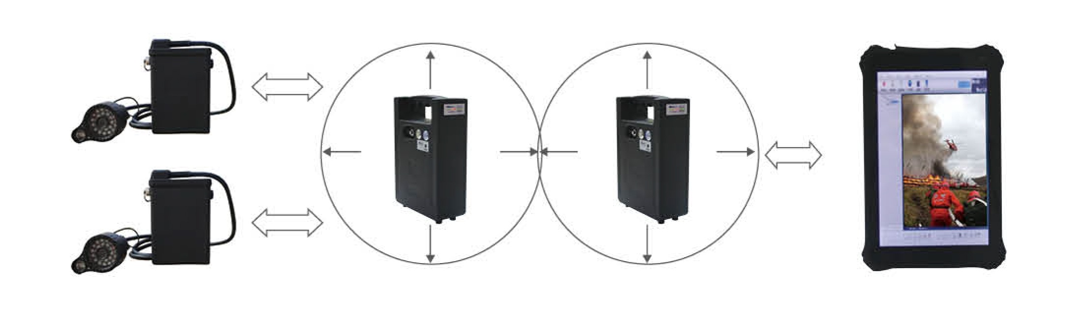 該裝置采用無線連接方式的信號中繼與傳輸,應急通信網絡的通信距離可達20公里。無線通信網絡采用自組織、自愈合方式快速形成多跳鏈狀或網狀網拓撲結構,無線通信距離不小于2000米,具有快速部署、高帶寬、低時延、可靠性強等特點。井下救援人員或工作人員,通過佩戴礦用本安型平板計算機、配套的低照度攝像頭自帶語音通話、無線中繼器、多參數測定儀等裝備,將現場的實時圖像、語音、環境參數等信息實時回傳到指揮平臺,調度指揮人員可以實時了解現場情況,并對現場人員進行調度指揮。