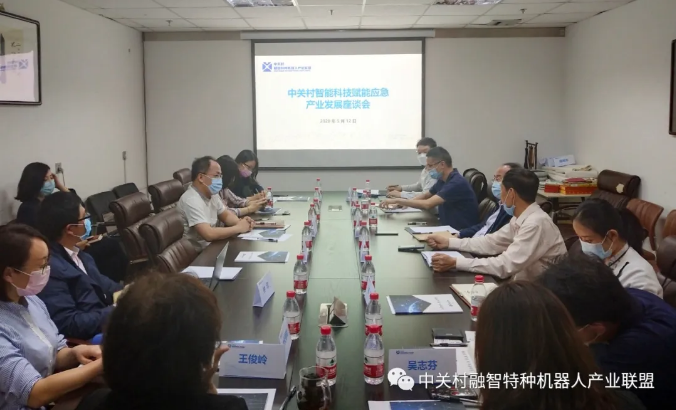 中關村管委會產業發展處研調員陳星、楊璇,專程到會上指導,并與參會單位負責人,就特種機器人產業如何賦能社會應急需求,展開了熱烈的討論。