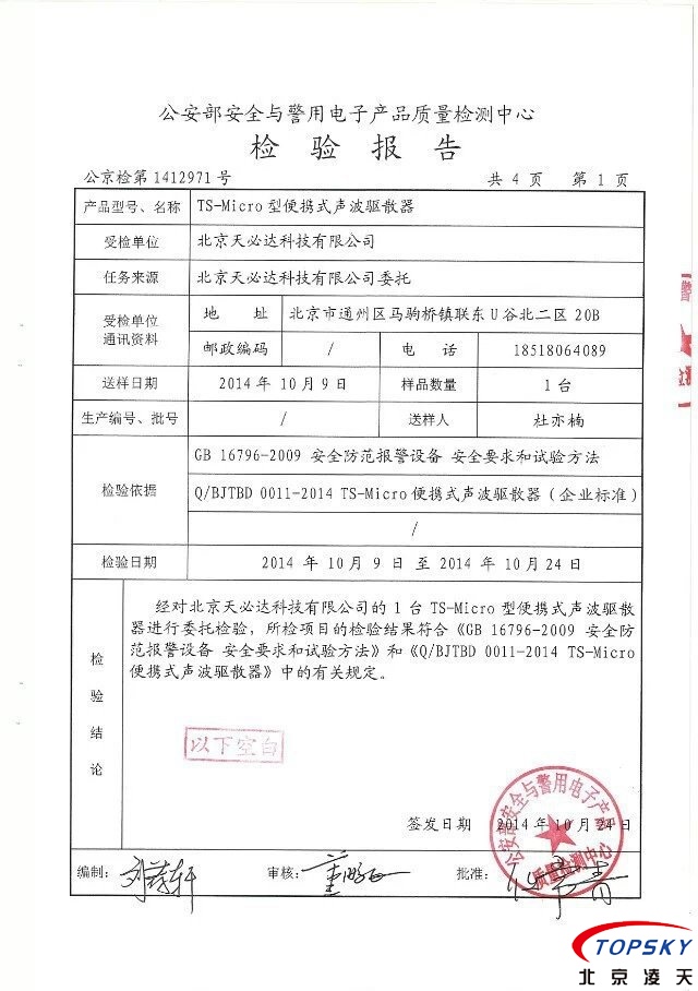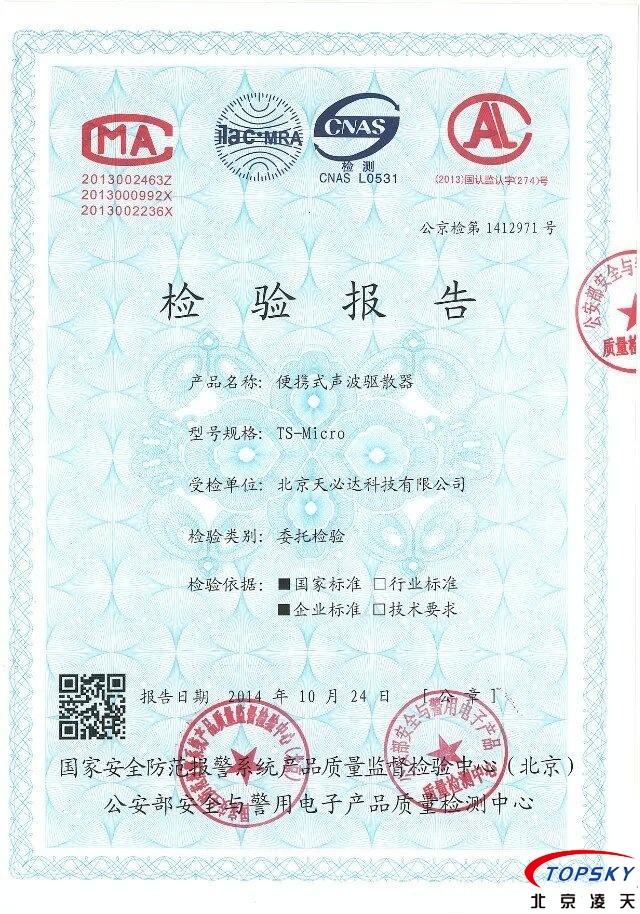 TS-Micro便攜式噪聲驅散器通過公安部權威機構檢驗