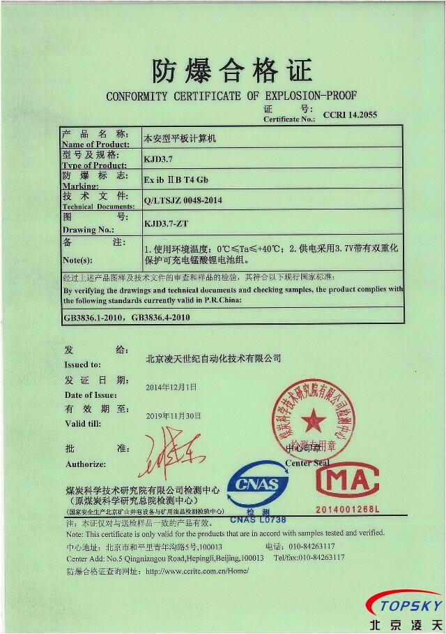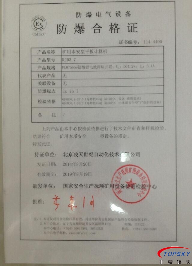 【云安通】KJD3.7防爆移動執法終端(本安平板計算機)取得煤安、防爆認證