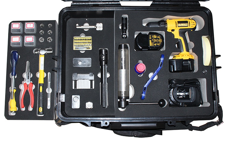 配置:專用電鉆1套、專用鉆頭1套、專用螺絲1套、鎖芯拔除器1個、鎖芯切斷器1個、換向扳手1個、鎖舌轉(zhuǎn)動器1個、定位器1個、輔助工具1套、