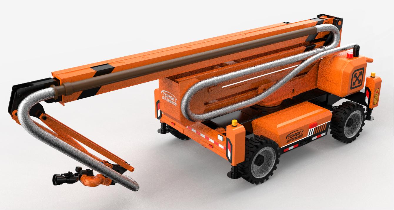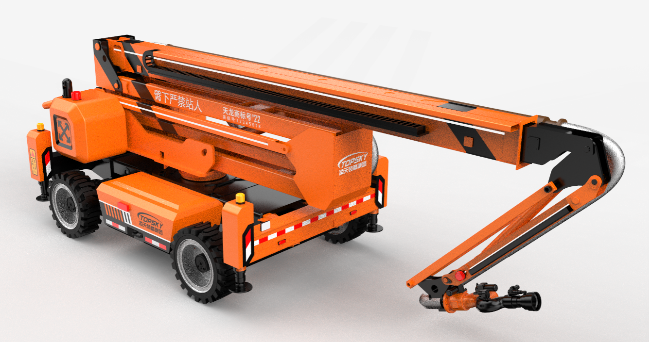 本產(chǎn)品具備遠程操控、全景顯示、高空噴射等功能,視野開闊,對著火點實施居高臨下的壓制及撲滅。