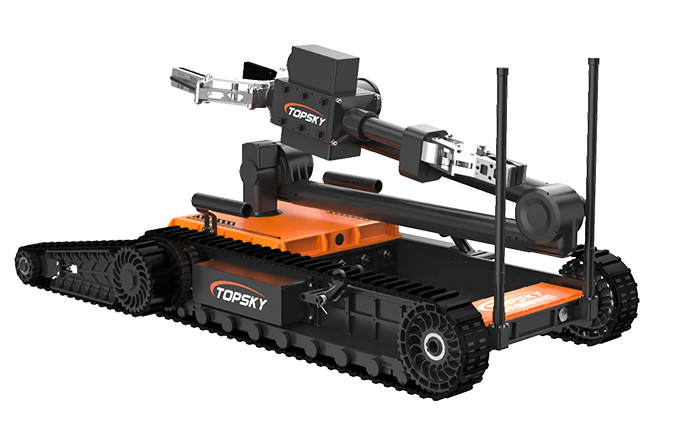 排爆機器人主要是用來處理爆炸物相關工作的排爆式機器人,也可用于偵察人難以達到的地形的一種機器人。7自由度排爆機械手能實現不同角度旋轉,近端最大可抓舉16KG的重物,小手爪可抓取3KG重物,機械臂可裝載爆炸物銷毀器,可現場摧毀爆炸物,底盤采用履帶+單擺臂結構,能適應各種地形快速作戰部署。同時機器人配備有線控制可以網絡干擾情況下通過有線遠距離作業。排爆機器人可與配件一同使用,包括銷毀器(例如29mm),爆炸物的遠程引爆控制系統等。