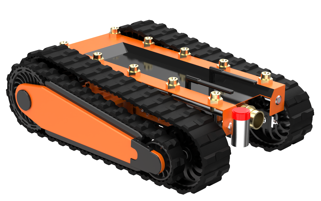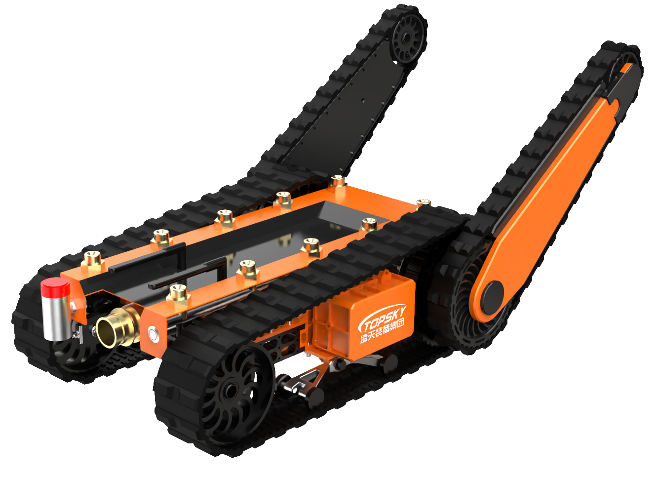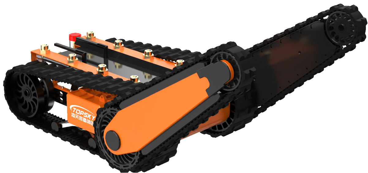 主要功能:履帶式防爆機器人底盤采用鋰電池電源作為動力源,使用無線遙控的方式遠距離操控,可搭載形式多樣,原地旋轉設計可使得運更靈活。